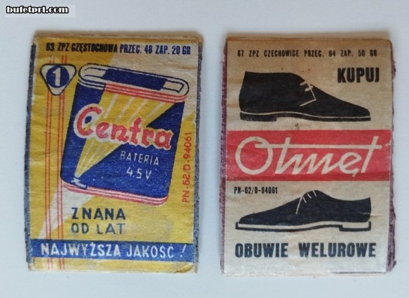 Etykiety zapałczane były idealnym miejscem na reklamę, nie tylko sieci RUCH. Zapałki były w PRL w powszechnych użyciu, nie tylko przez miliony palaczy. Idealne do podpalenia saletry, czy wyciągnięcia kawałka baleronu z dziury w zębach… Reklamowano na nich wiele zakładów pracy albo same produkty. Jak powyższe przykłady, albo to, co poniżej.