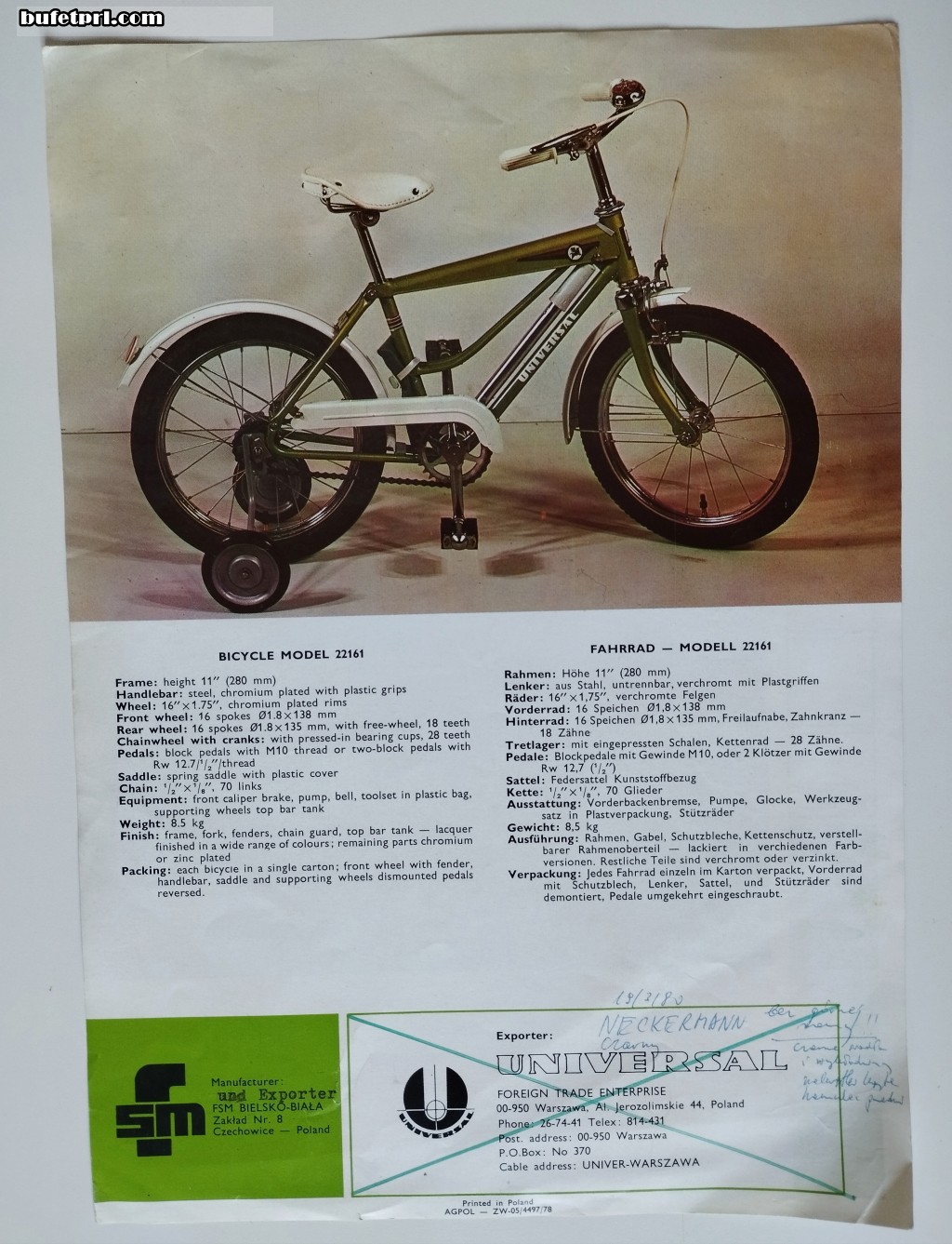 Taki katalog był m.in. prezentowany na targach poznańskich. Jak przekonywał mnie sprzedawca, rowerami tymi zainteresowali się niemieccy kontrahenci, ale z różnych przyczyn, nie zakupili ich na swój rynek.