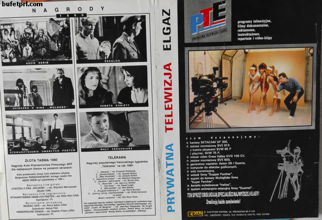 Otóż jest to plakat filmowy, a na rewersie reklama telewizji ElGaz (pisałem o niej w swojej książce „Sex, disco i kasety video. Polska lat 90.”) oraz wykaz nagród Koła Piśmiennictwa Filmowego SFP za rok 1990. Czyli gazeta pochodzi z 1991. Kurczę same dobre filmy.