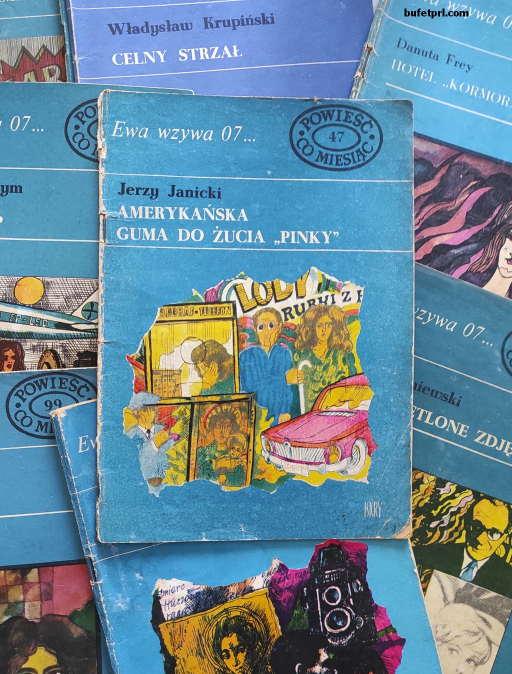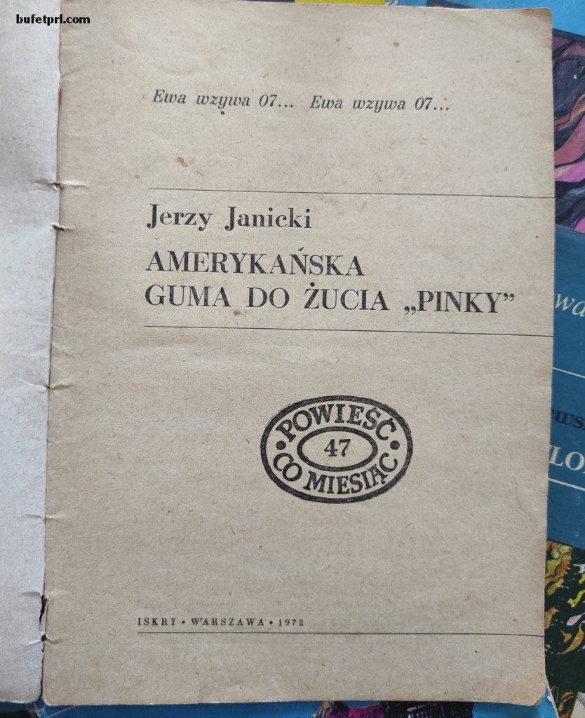 Taki to mocny dialog w jednej z pierwszych scen prowadzą urzędniczka pocztowa Henia oraz jej adorator ubrany szałowo w dżinsy i czerwoną koszulę. Można go usłyszeć w jednym z odcinków Teatru Sensacji Kobra „Amerykańska guma do żucia Pinky”. Ostatnio natrafiłem na ten spektakl i przypomniałem sobie, że mam jego literacki pierwowzór.