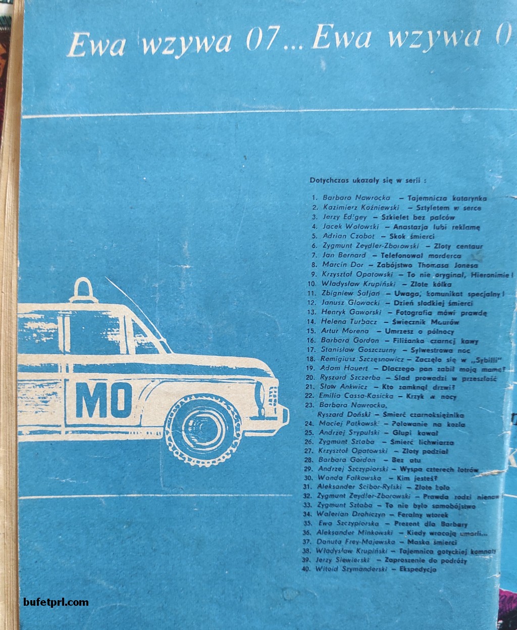 Historie w serii „Ewa wzywa 07” nie zawsze są szczególnie pasjonujące, ale za to okładki podobają mi się bardzo! No i ten milicyjny czterokołowy ścigacz z tyłu…