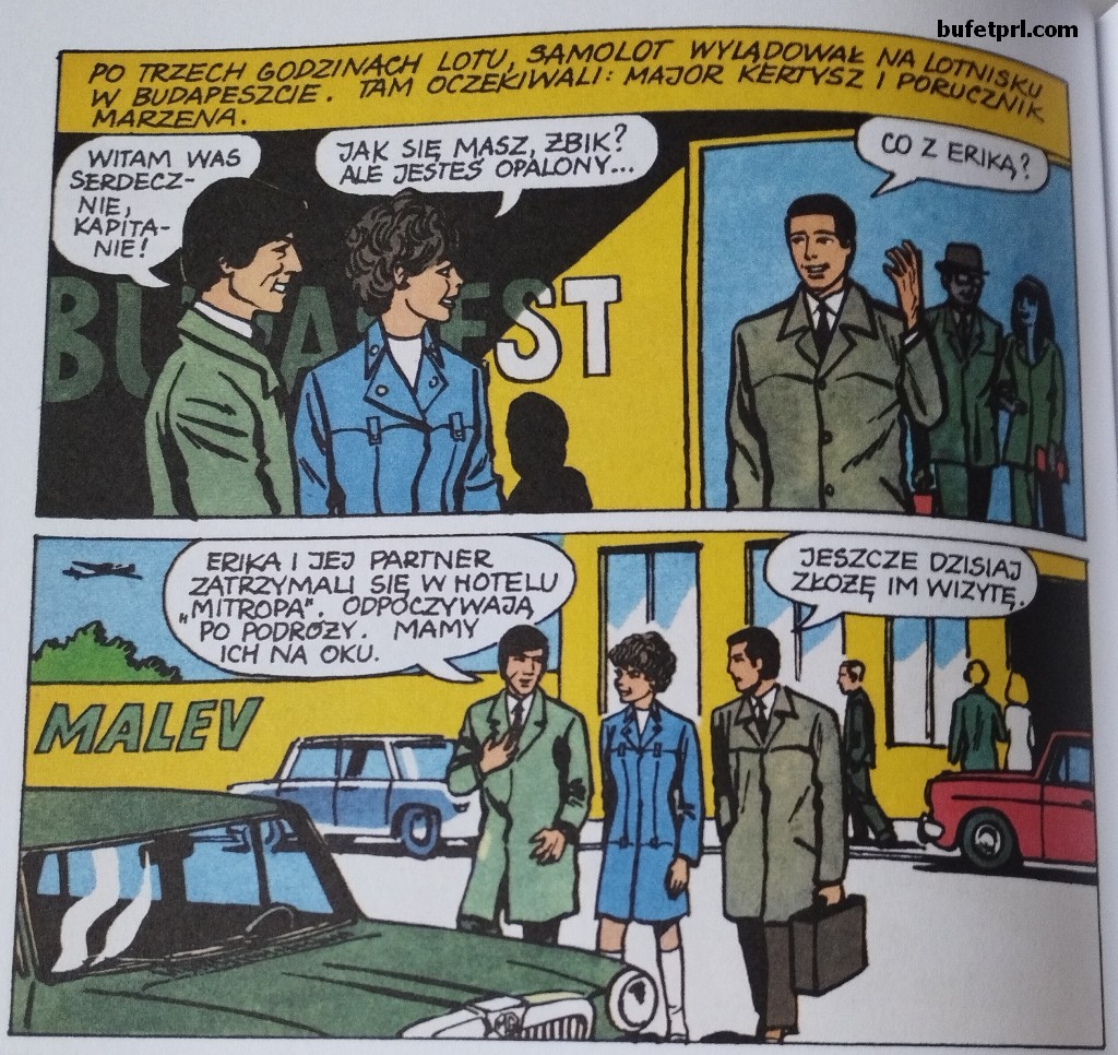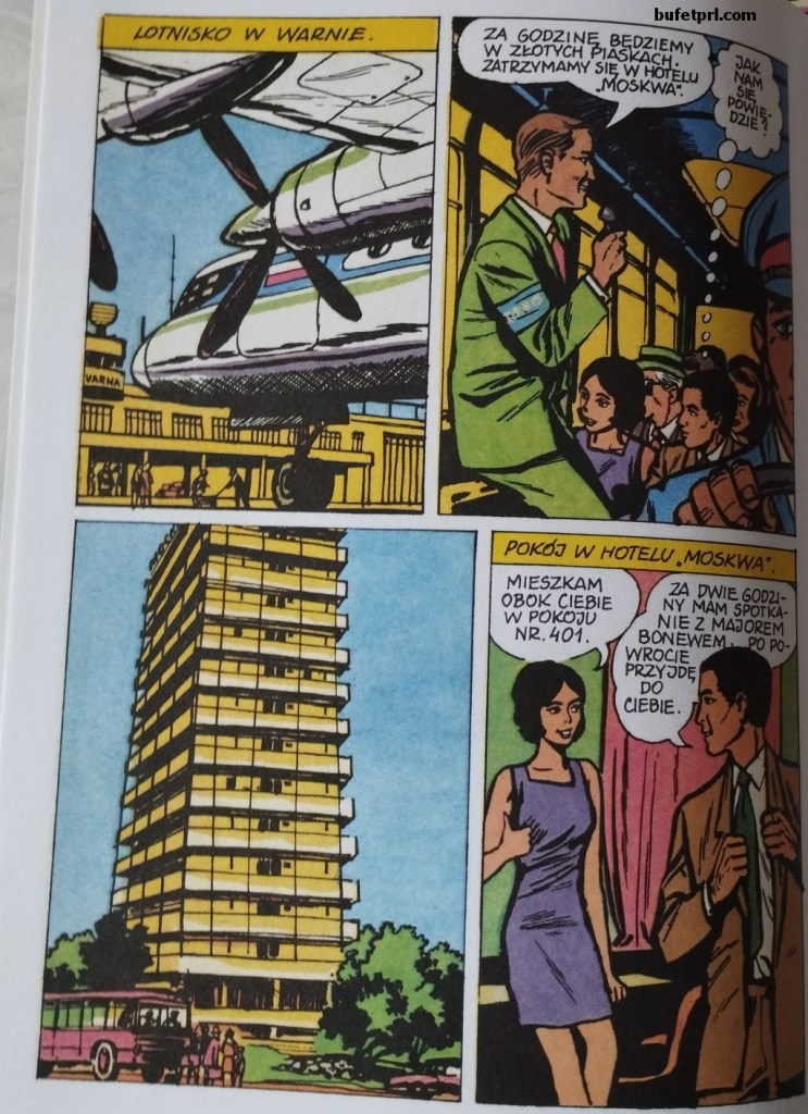 Mam nadzieję, że te obrazki trochę to wyjaśniają. Otóż ciocia ma pamiątki po kilku hotelach i atrakcjach turystycznych Bułgarii. To też w tym kraju dzieje się akcja mini serii kapitana Żbika. Ciocia była tam w 1961 roku. Akcja pięciu odcinków Żbika, które stanowią całość historii, dzieje się prawdopodobnie trochę później. Seria komiksowa z tymi przygodami, rysowana przez Grzegorza Rosińskiego, a napisana przez Władysława Krupkę ukazała się po raz pierwszy na przełomie lat 60. i 70. Ja korzystam tu ze wznowień wydawnictwa Ongrys, które zresztą regularnie lądują w sklepach.