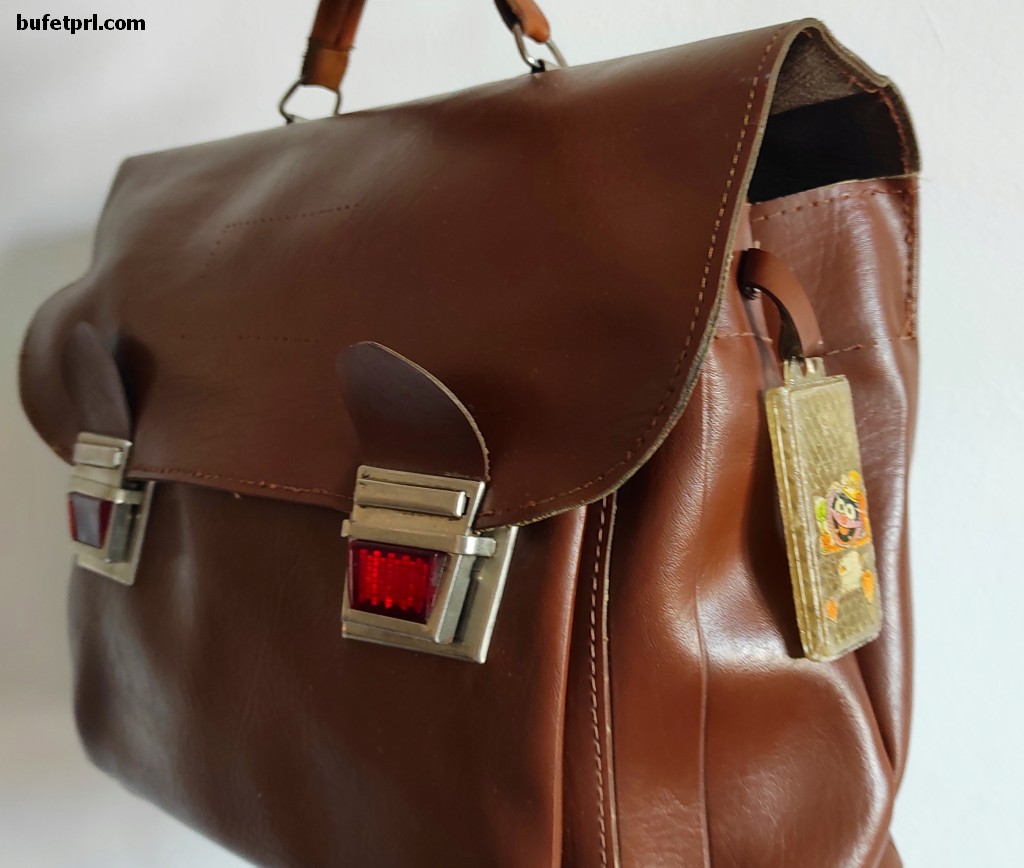 Takie cudo dostałem ostatnio do kolekcji od przyjaciółki. To jej prawdziwy tornister ze szkoły. Był tak charakterystycznym elementem szkolnego życia jak fartuszki, picie mleka czy wspólne mycie zębów. Różne były typy, zapinany na jedną klamrę, z rysunkami. Ten jest bardzo klasyczny.