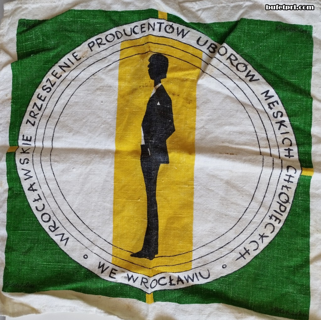 Taki to mini ręcznik, szmatka, chustka… w każdym razie reklamowy kawałek materiału. Piękna grafika z eleganckim trochę chłopakiem, trochę mężczyzną. Reklamuje Wrocławskie Zrzeszenie Producentów Ubiorów Męskich Chłopięcych… we Wrocławiu. W PRL-u w stolicy Dolnego Śląska sporo było zakładów odzieżowych. Nie tylko z modą męską. Zakłady Przemysłu Odzieżowego „Moda”, Spółdzielnia Pracy Delia, Spółdzielnia Pracy Kodim, Spółdzielnia Pracy Zgoda... trochę tego było. Wiele zakładów włączano w różne zrzeszenia i tak tworzyły się molochy. Dochodzimy tu do innego duże zrzeszenia.