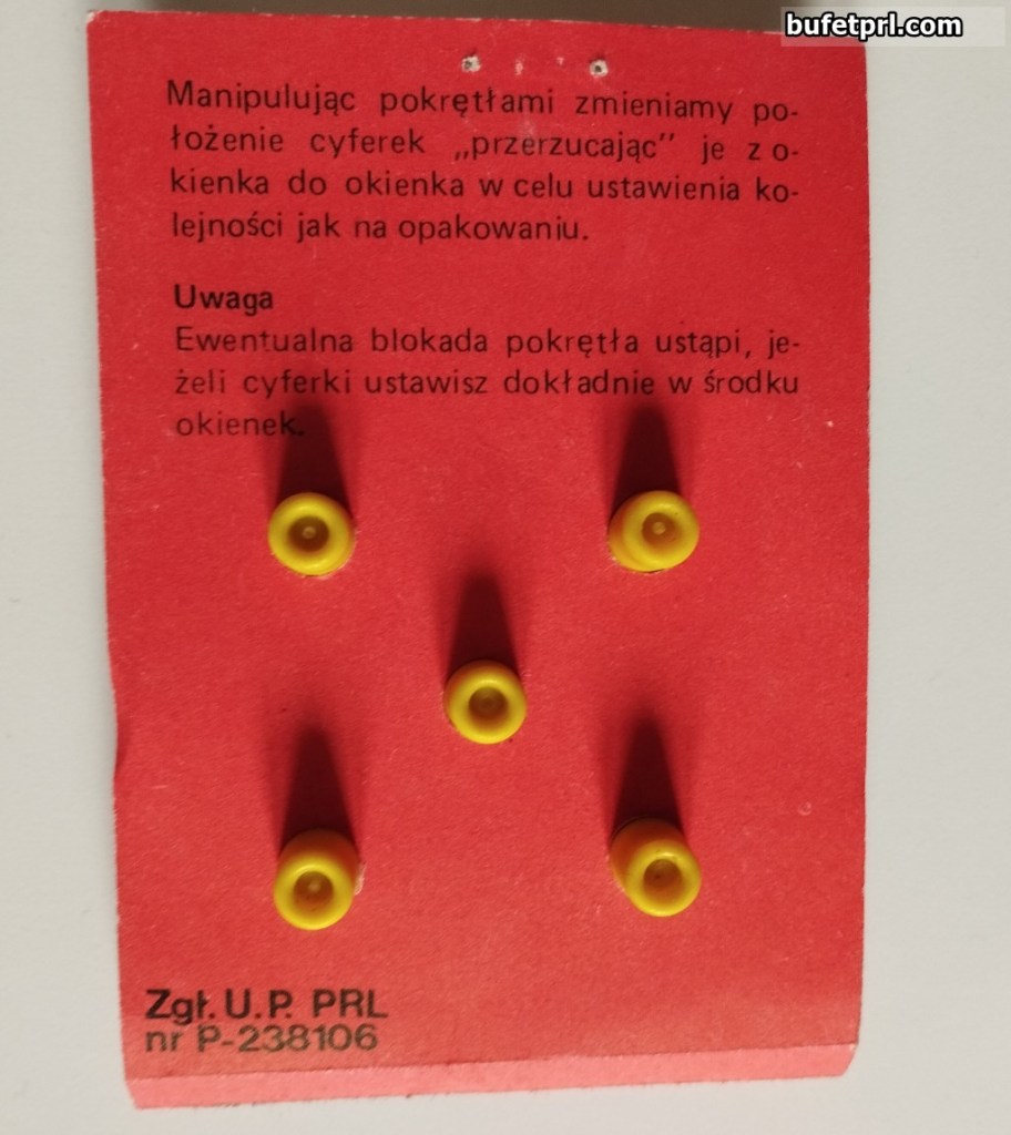 Pokrętłami przestawia się cyferki tak, żeby ustawiły się w kolejności jak na opakowaniu.
