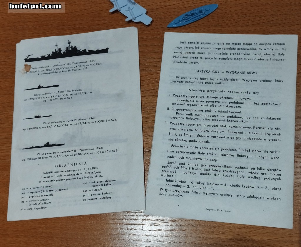 Do wszystkiego jest plansza, no i instrukcje. Są też opisy okrętów (historyczne), taktyka i takie tam fajne rzeczy.