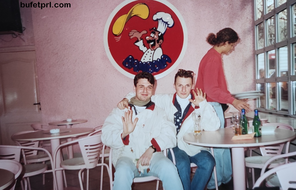 Chodziliśmy też do pizzerii „Bambola”. Lokale tej sieci były też w Warszawie*. Miały charakterystyczne czerwone logo z uradowanym, podrzucającym placek pizzy kucharzem, przypominającym kuchcika z cyklu przygód Baltazara Gąbki, czyli Bartoliniego Bartłomieja Herbu Zielona Pietruszka. Stołowali się tam zresztą bohaterowie serialu „Ekstradycja”.
