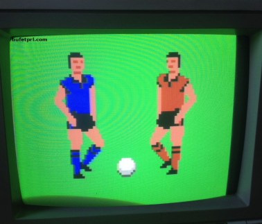 Tym razem nowość. Nie będziemy odpalać magnetofonu i wgrywać gier, ale załadujemy je prosto z kartridża! Mamy na nim 4 gierki, w tym kultowy International Soccer.