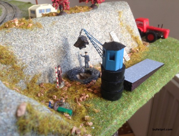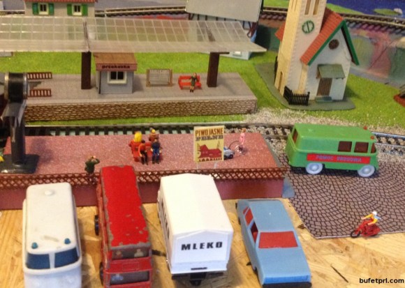 Trochę się napracowałem, szczególnie z dodatkami na stragany. Wszystko zrobione z różnych odpadów po modelach. No i są ludzie. W tym pan sprzedawca z przerwą na napój (ten w głębi).