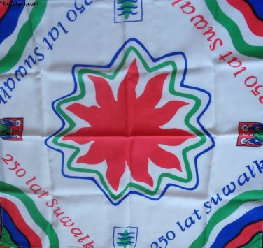 Ale w kolekcji mam również okolicznościowe chusty z innych imprez. Oto przykład chusty wydanej przez Związek Młodzieży Wiejskiej w 1970 roku. Pochodzi z wioski o ładnej nazwie Błękwit, leżącej w gminie Złotów.