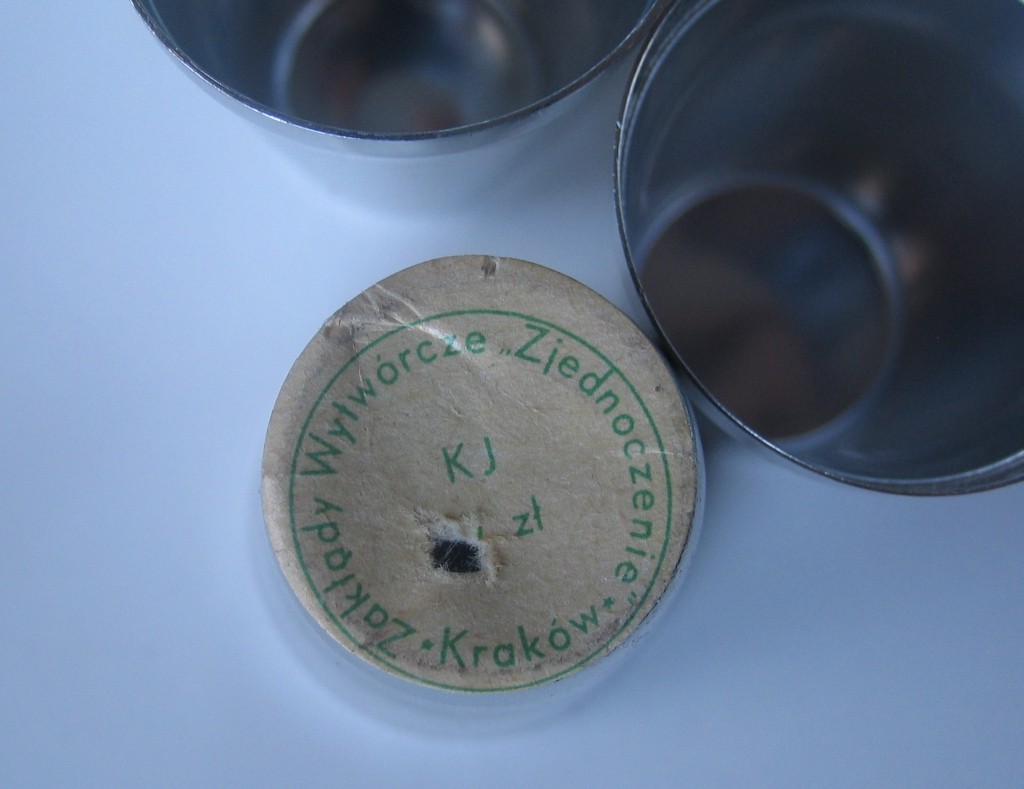 Pierwsze (dwie sztuki) z napisami i buteleczkami. Na nich zresztą też widoczny napis: Vodka Wyborowa. Poza tym „imported from Poland”, czyli były sprzedawane za granicą. Zresztą o luksusie świadczy pozłacany rant.