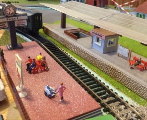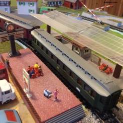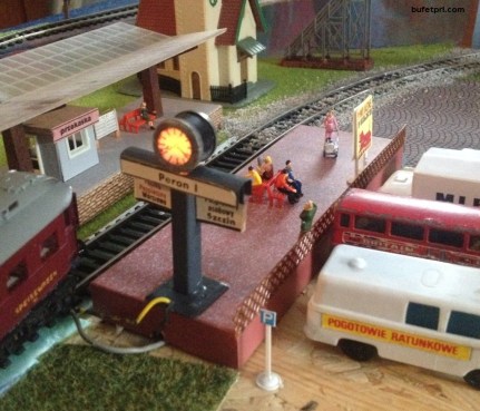 W tle widać dworzec wyprodukowany przez Olbernhauer Wachsblumenfabrik Olbernhau, czyli OWO Spielwaren. Ma przejście podziemne, ławeczkę, rozkład jazdy, przeszklone zadaszenie. No i budkę z przekąskami!