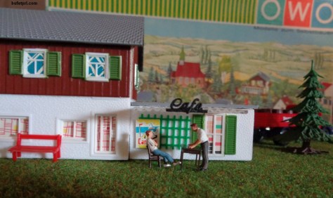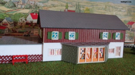 Ponieważ jednak mam już wystarczającą liczbę dworców na makiecie to zdecydowałem się zrobić z tego dom towarowy z kawiarnią. I teraz wygląda tak: