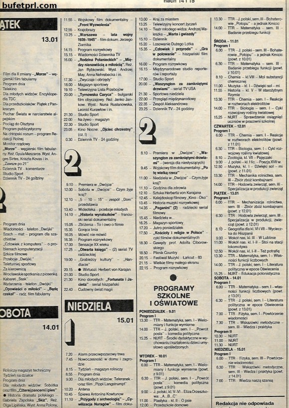 W środku tradycyjnie recenzje płyt, koncertów, reportaże, listy, zestawienia, wywiady itp. W numerze ze stycznia 1988 również podsumowanie roku minionego. W jazzie: narzekanie na młodych artystów, z drugiej strony okopanie się „młodej fali”, ostateczne poddanie się starej gwardii, która obecnie gra na statkach i w hotelach. Rock: komercjalizacja, siła Jarocina, kariery Lecha Janerki, Tiltu, Wojciecha Waglewskiego, zespołów Dezerter i Kult.