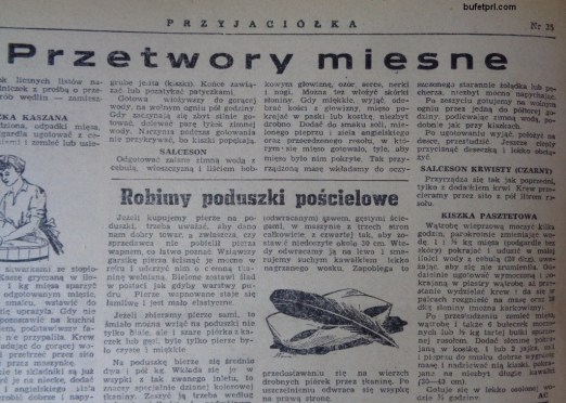 A na deser przepis na salceson z „Przyjaciółki” z pierwszego rocznika, 1948 roku. Nakład prawie milion egzemplarzy!