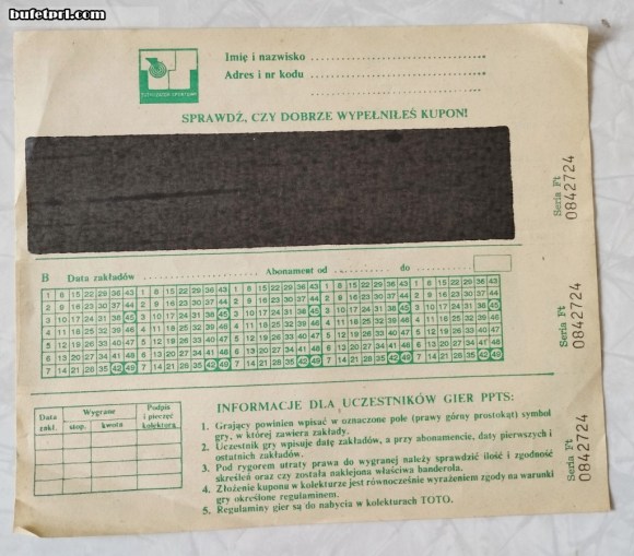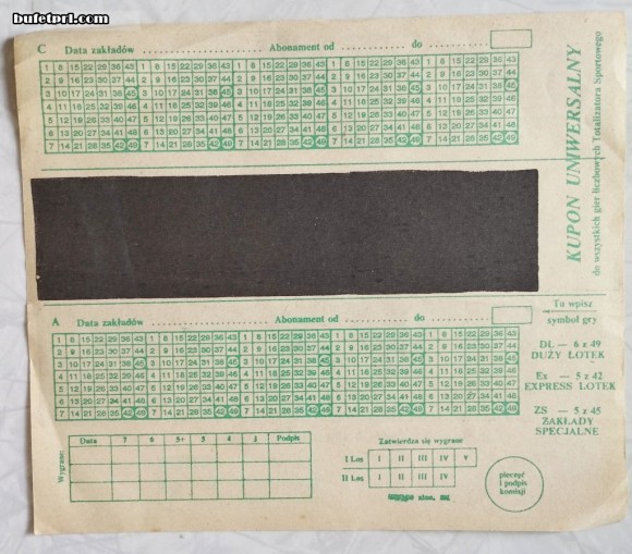 Do zakładów z liczbami dochodziły różne zakłady sportowe. Na przykład tutaj (jeden kupon z 1962 r.) widać, że można było typować żużel, żeglarstwo, szachy, piłkę wodną, spadochroniarstwo, konkurencje lekkoatletyczne, bobsleje, a nawet bieg na przełaj.