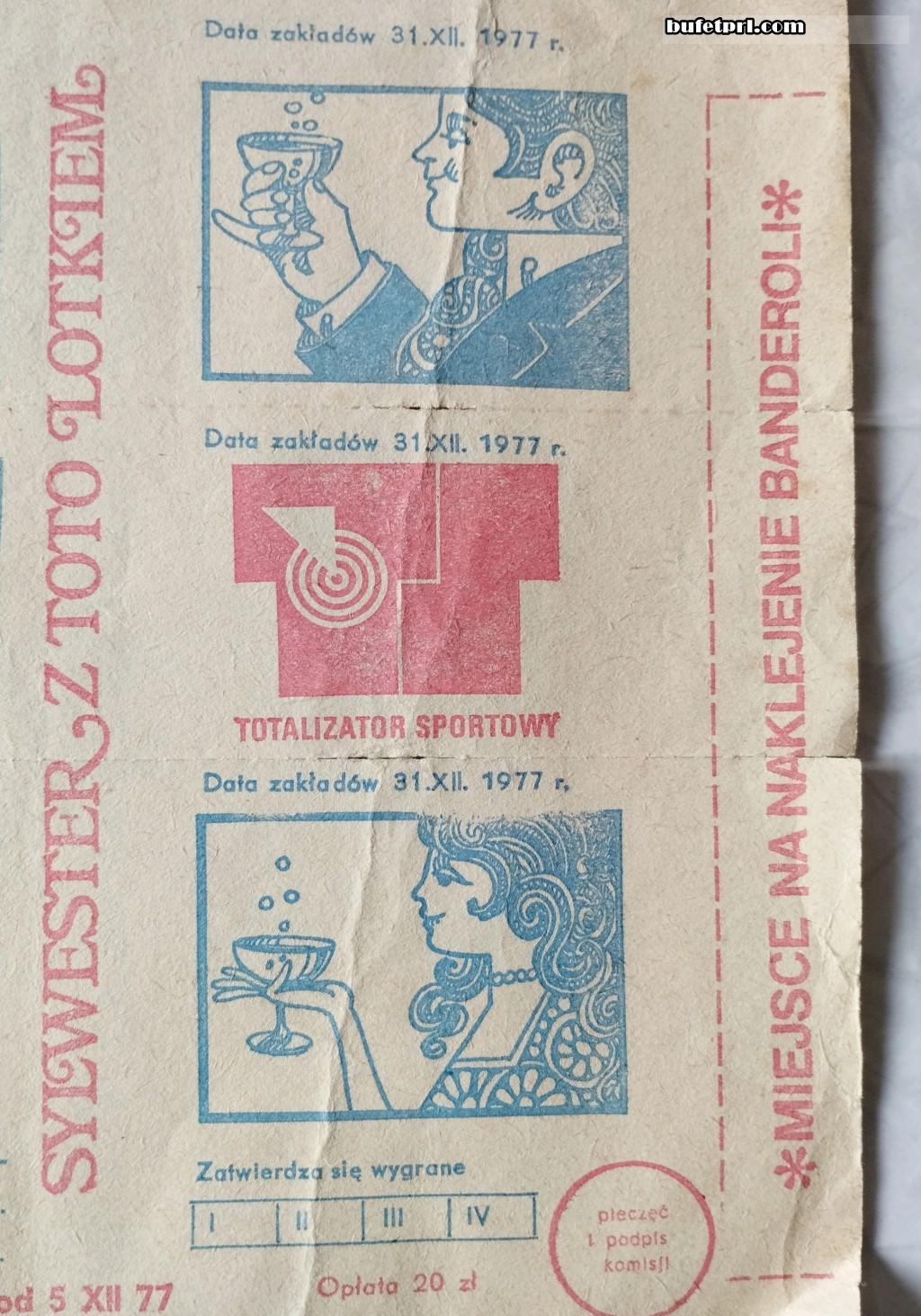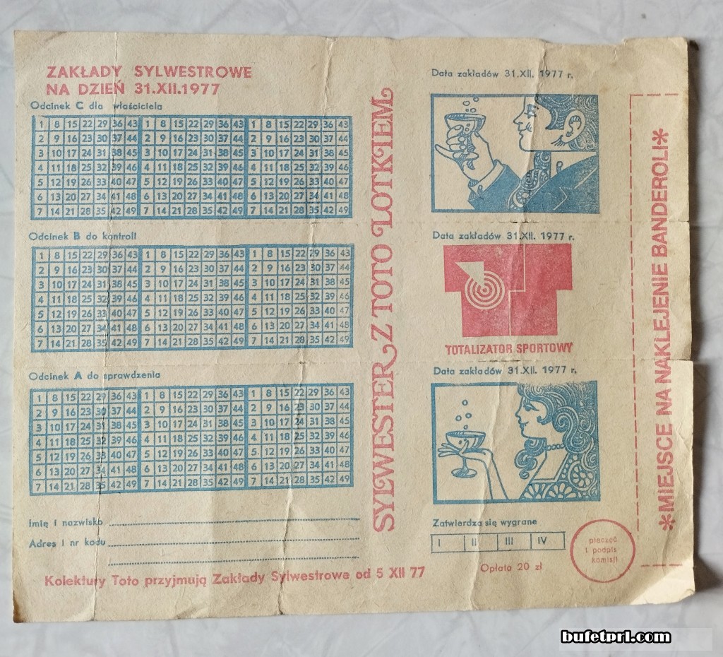 Toto Lotek przygotowywał też specjalne zakłady na różne okazje. Na przykład sylwestrowe. Tu do wygrania Fiaty, Syrenki, a wszystko z pięknymi grafikami na sylwestra 1977 r.