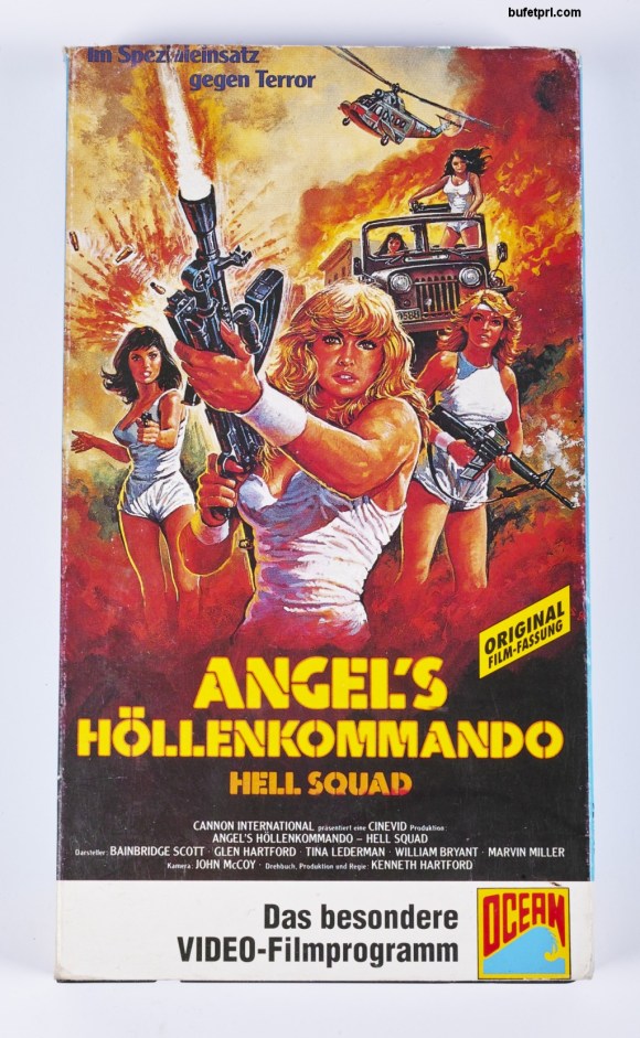 Najpierw „Angel’s Hollenkommando”, czyli w oryginalne „Hell Squad”. Już po okładce widać, że ten amerykański film z 1986 roku to mistrzostwo kina akcji: karabiny, dziewczyny, helikoptery, pościgi, wybuchy. Reżyserem tego dzieła, jego scenarzystą, producentem jest Kenneth Hartford. Nie szukajcie, nic wybitnego nie zrealizował, chyba że za taki uznać horror „Potwór z jeziora”. Z tym scenariuszem to jednak nie do końca prawda, bo większość napisał inny gość, którego pan Kenneth wycyckał na pieniądze. Ale pomijając reżysera i scenarzystę (scenarzystów). Jeśli chodzi o aktorów, a bardziej aktorki też próżno szukać ciekawych nazwisk. Może poza jednym. „Hell Squad” był ostatnim filmem Marvina Millera, aktora z bogatą filmografią, który grał już w latach 40.